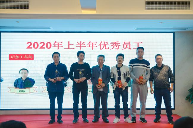 表彰大會(huì)由行政部部長(zhǎng)張炯主持,公司總經(jīng)理沈可仁代表發(fā)言,大會(huì)共設(shè)2個(gè)獎(jiǎng)項(xiàng):疫情期間特別標(biāo)兵及2020年上半年優(yōu)秀員工。 會(huì)議由沙畫(huà)展示公司32年發(fā)展歷史拉開(kāi)序幕,獲獎(jiǎng)員工依次上臺(tái)領(lǐng)獎(jiǎng),沉甸甸的獎(jiǎng)杯代表著公司對(duì)他們工作的認(rèn)同與期望。希望全體員工能夠向這些優(yōu)秀員工學(xué)習(xí),共同開(kāi)創(chuàng)公司的美好未來(lái)!